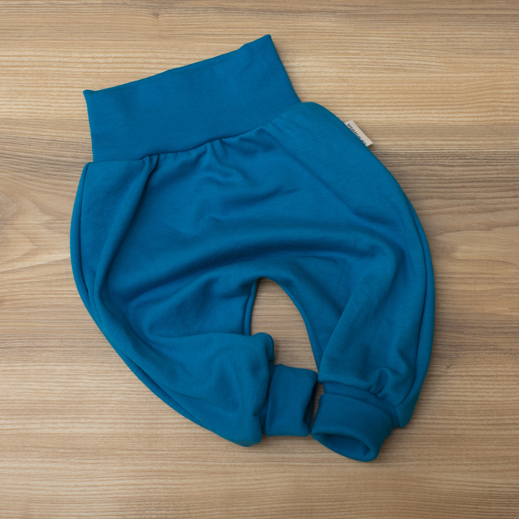 Was ich dir noch sagen möchte: Die Hose ist mega bequem. Das Bauchbündchen ist breit und sehr dehnbar. So engt es nicht ein und lässt die Hose mitwachsen. Auch die Beinbündchen sind länger, sodass die Hose erst gekrempelt und somit mitwachsend getragen werden kann. Ganz wunderbar für unsere kleinen Wunder. Die Kuschelhose hält den Windelpopo schön warm. 🙂
