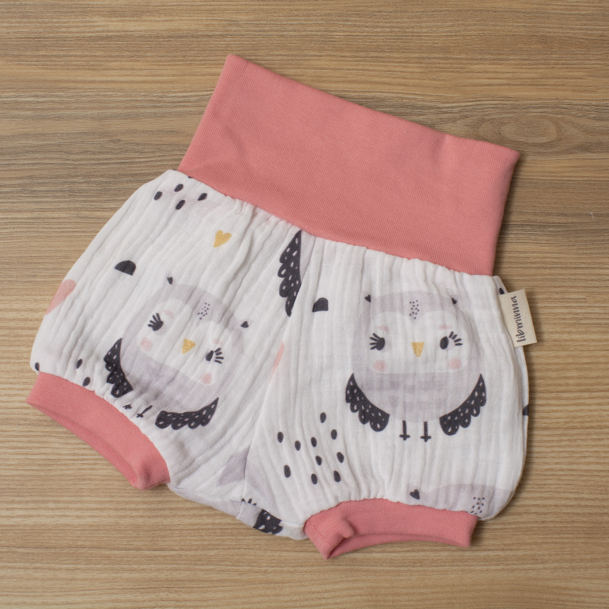 Was ich dir noch sagen möchte: Die Hose ist mega bequem. Das Bauchbündchen ist breit und sehr dehnbar. So engt es nicht ein. Ganz wunderbar für unsere kleinen Wunder. Die Sommerhose verdeckt super herzig den Windelpopo. 🙂