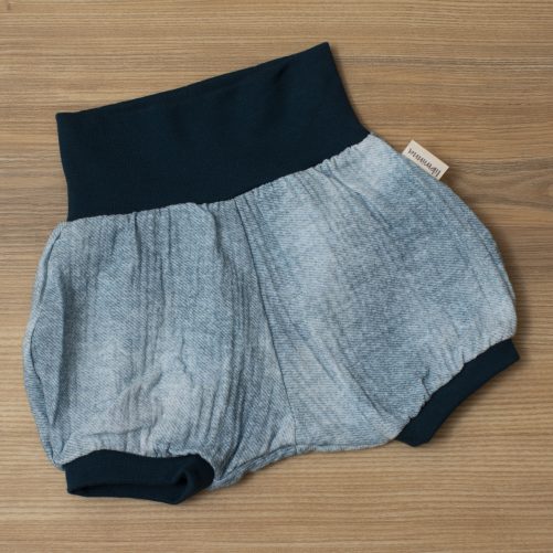 Was ich dir noch sagen möchte: Die Hose ist mega bequem. Das Bauchbündchen ist breit und sehr dehnbar. So engt es nicht ein. Ganz wunderbar für unsere kleinen Wunder. Die Sommerhose verdeckt super herzig den Windelpopo. 🙂