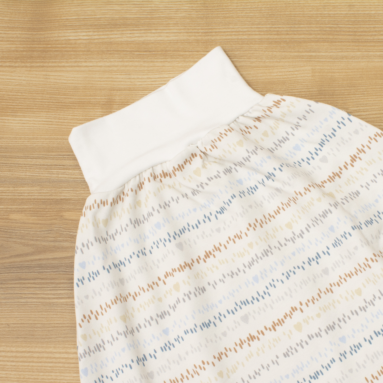 Was ich dir noch sagen möchte: Der Strampelsack ist sehr lange mitwachsend. Die angegebene Größe ist die „Startgröße“. Du ziehst deinem Baby den Strampelsack bis zu den Achseln hoch – die Arme bleiben draußen. Mit der Zeit wandert das Bündchen immer weiter hinunter bis es schließlich auf Nabelhöhe angelangt ist. Dann wird es langsam Zeit für eine neue Größe. 😉